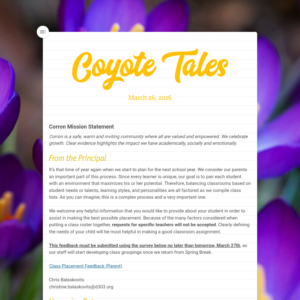 Returning Student Registration for the 2025-2026 school year is now open. Click here for more information.